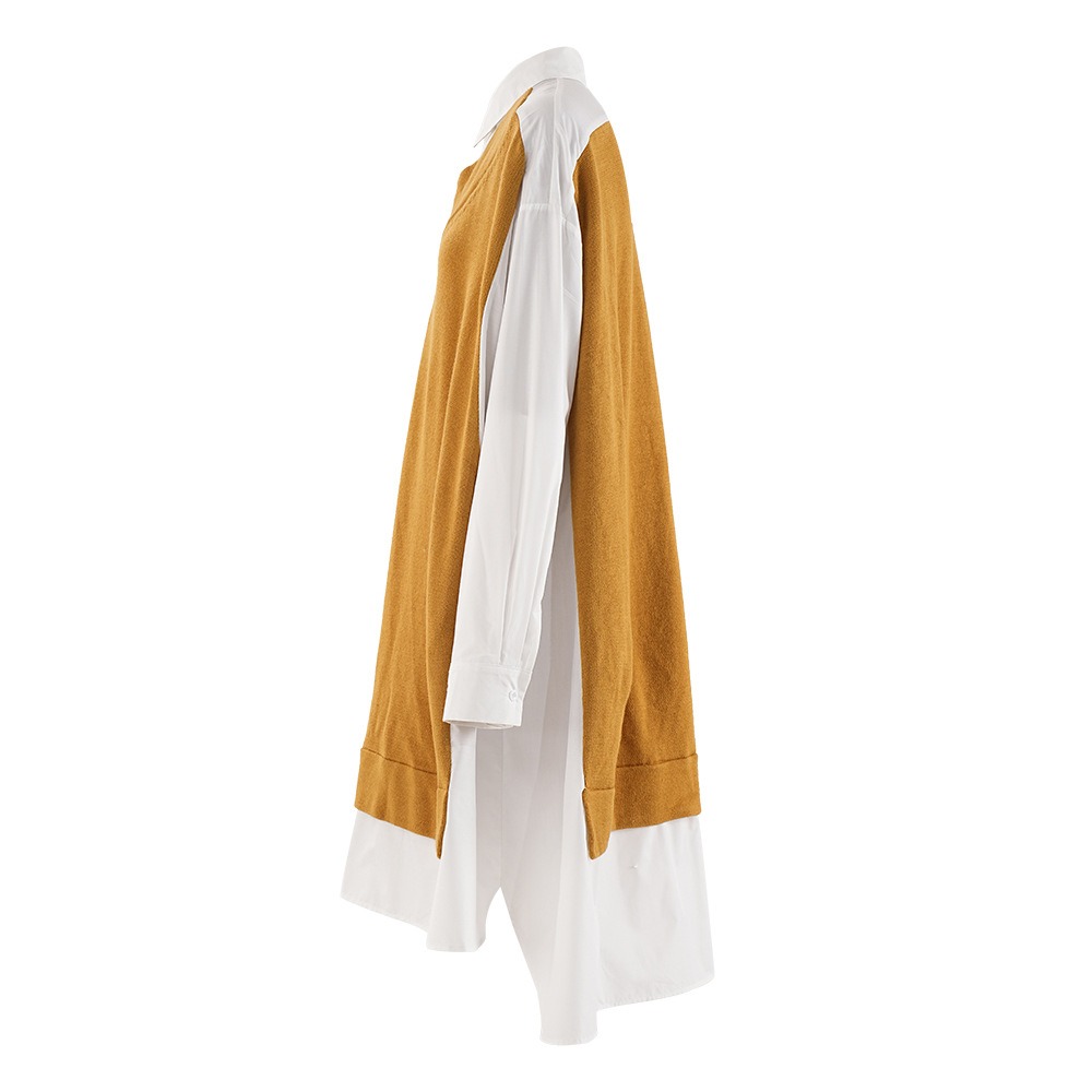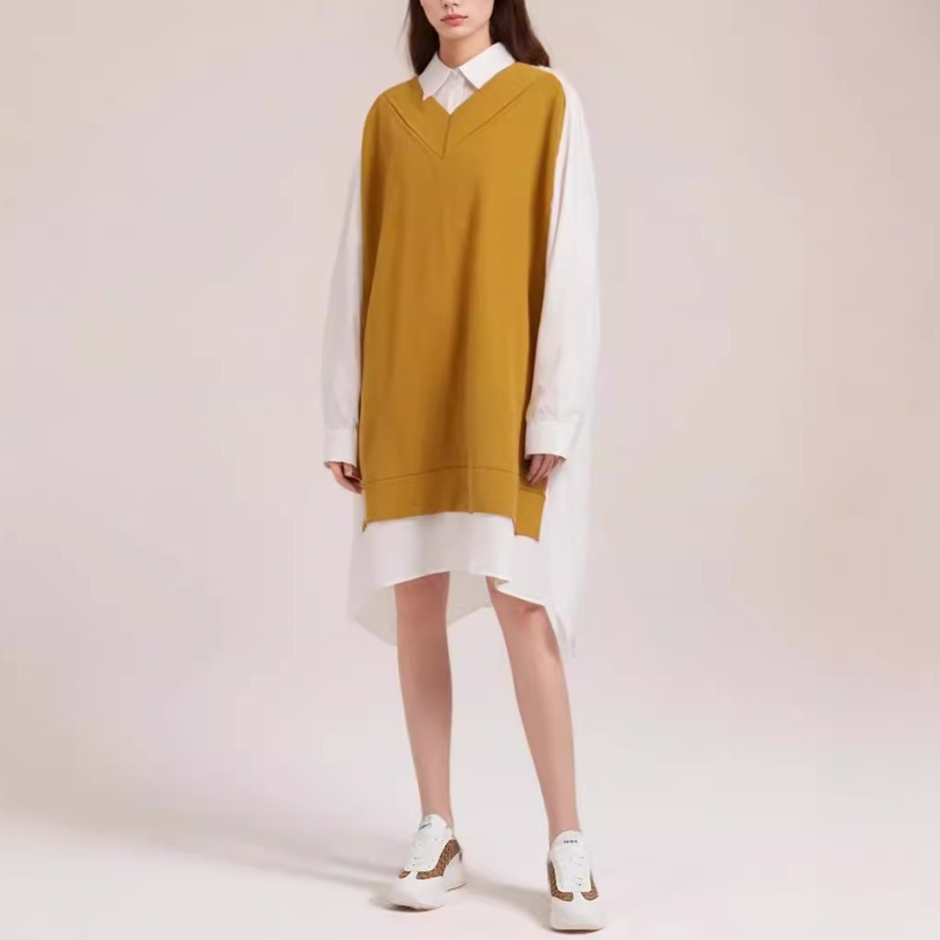 Lazy Style Loose Retro Shirt Skirt Women’s Autumn New Knitted Splicing Fake Two piece Design Versatile Dress