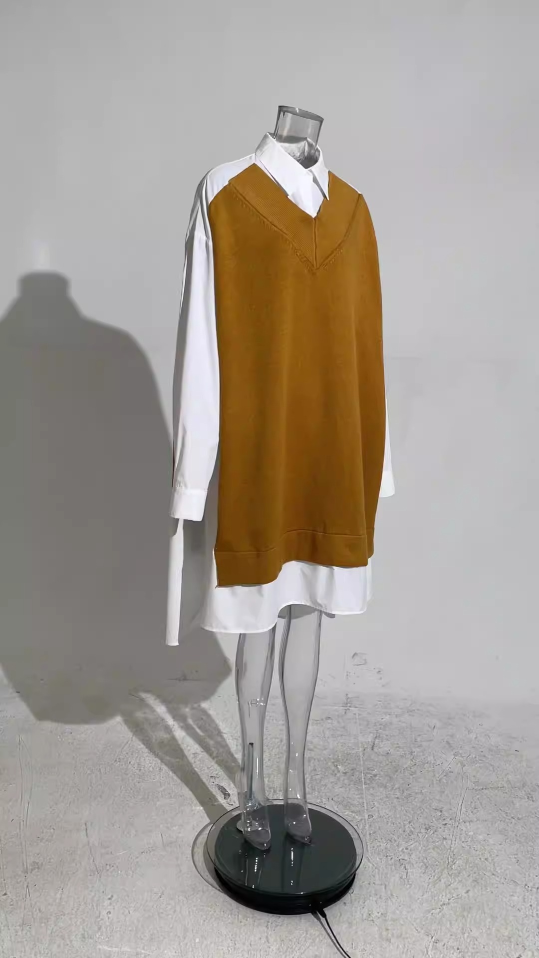 Be the first to review “Lazy Style Loose Retro Shirt Skirt Women’s Autumn New Knitted Splicing Fake Two piece Design Versatile Dress”