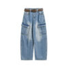 Multi-Pocket Loose Straight Leg Wide Leg Washed Cargo Denim Pants