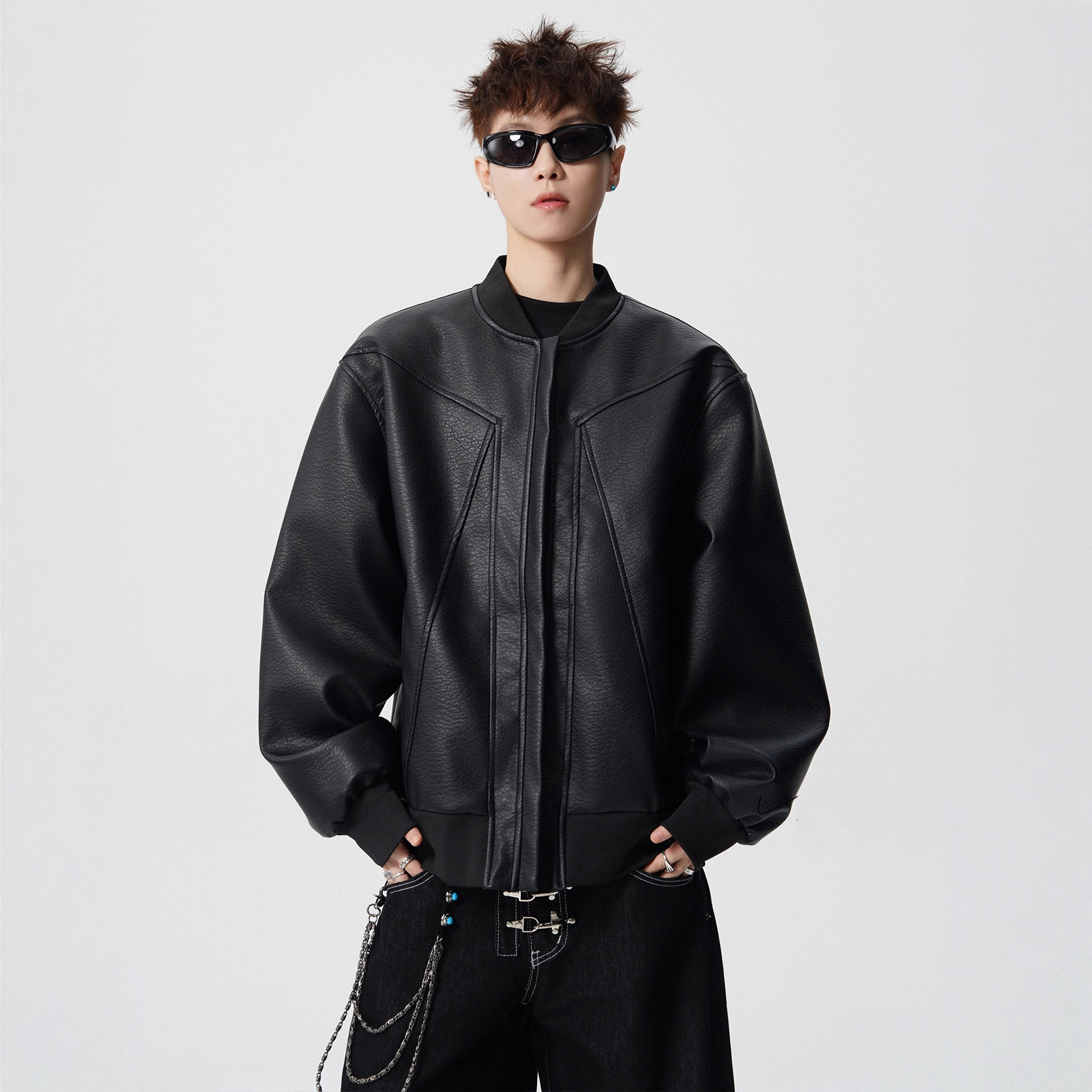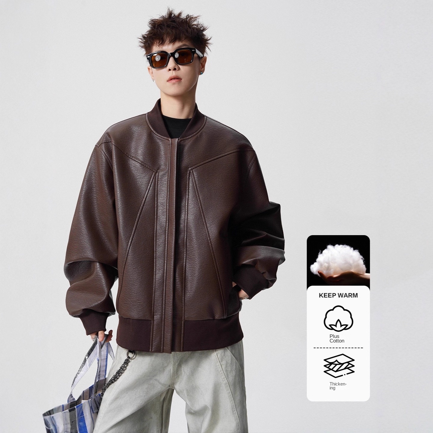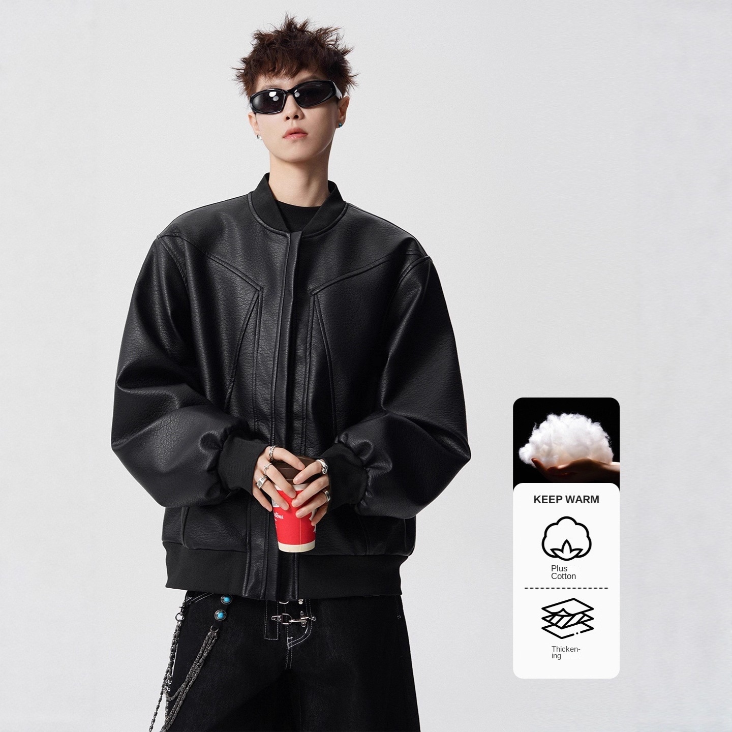 Style Patchwork Baseball Collar Jacket for Men and Women Loose Casual Cotton-Padded Outerwear High Street Streetwear Stand-Up Collar Leather Jacket