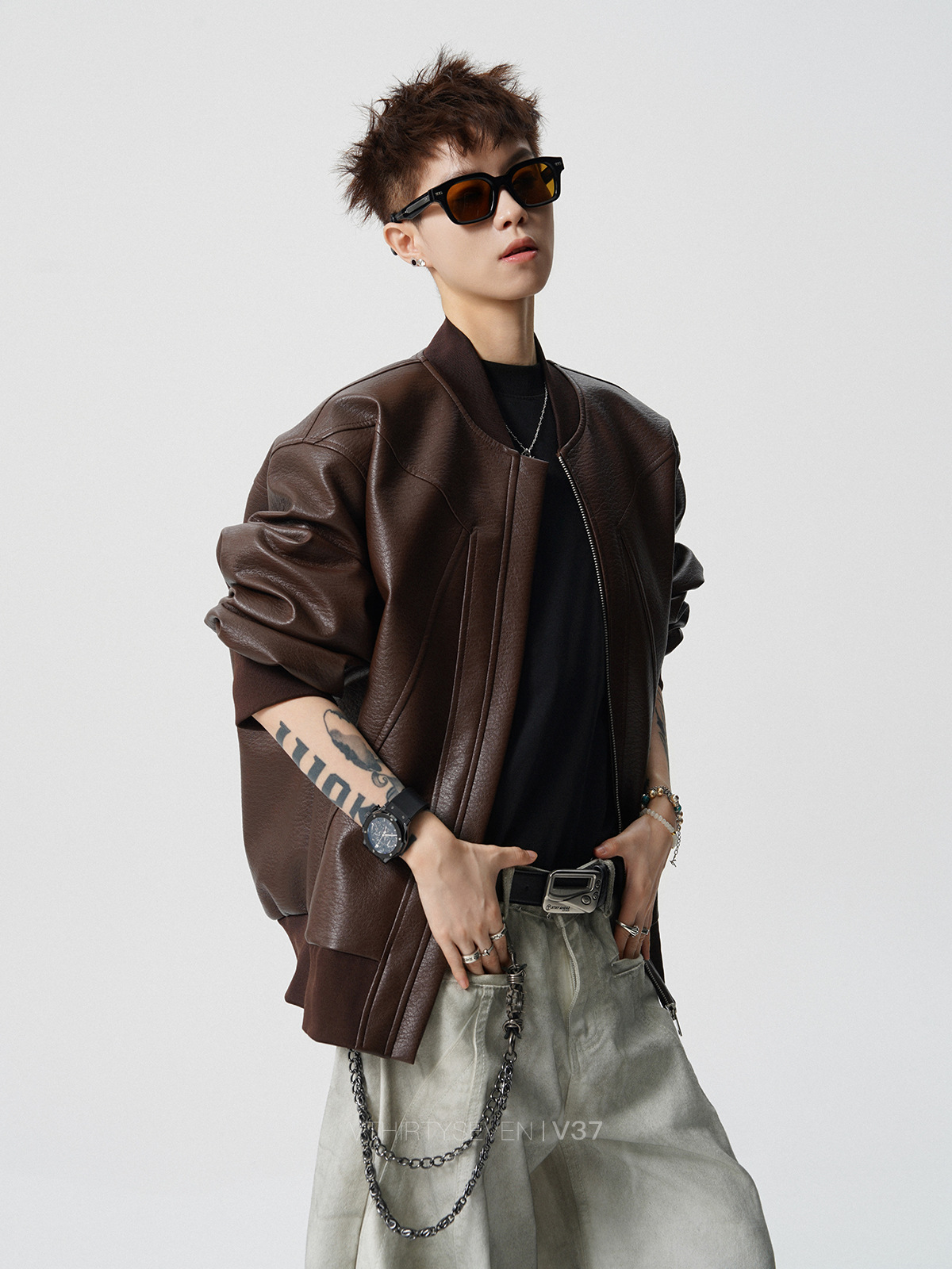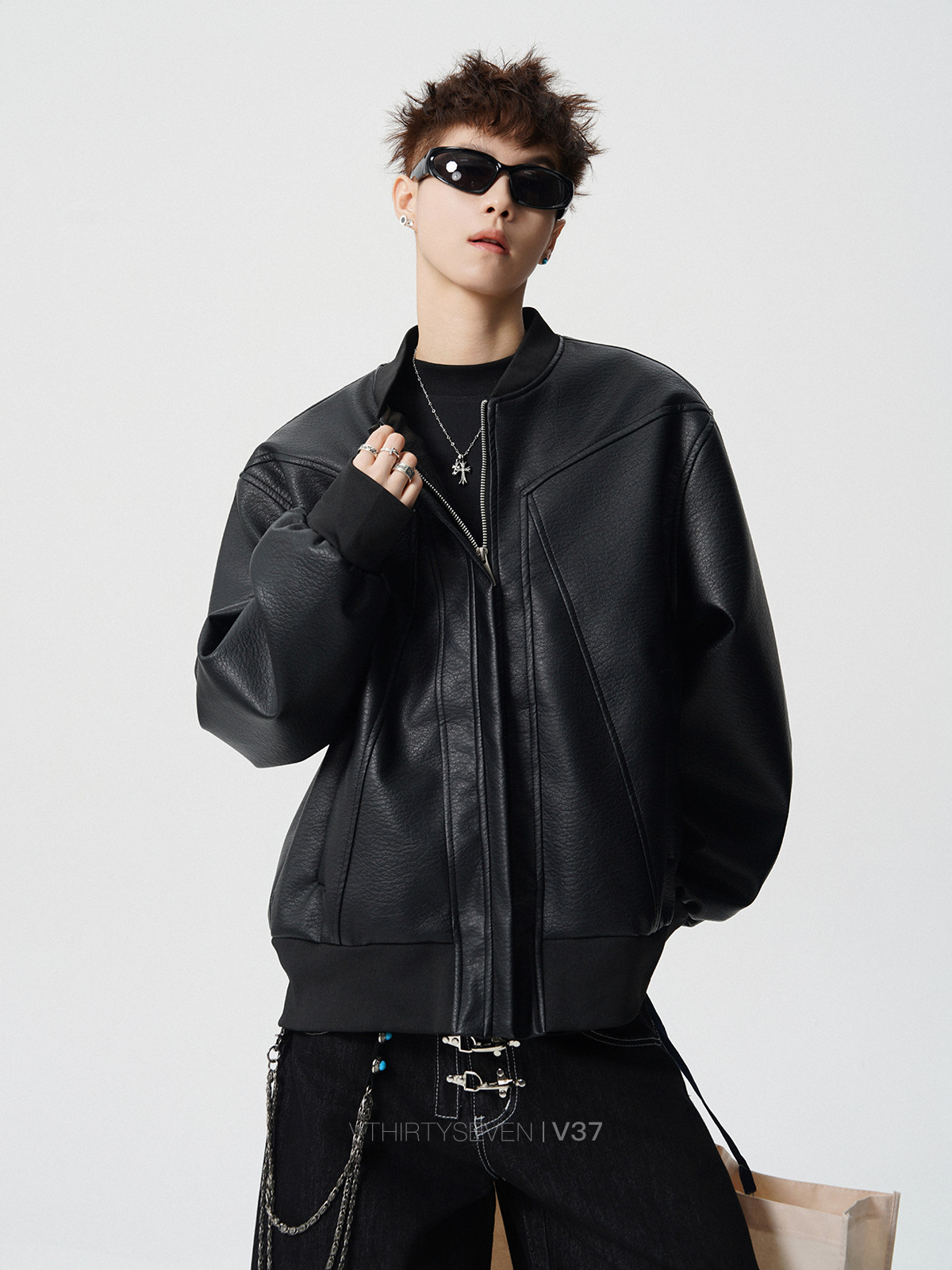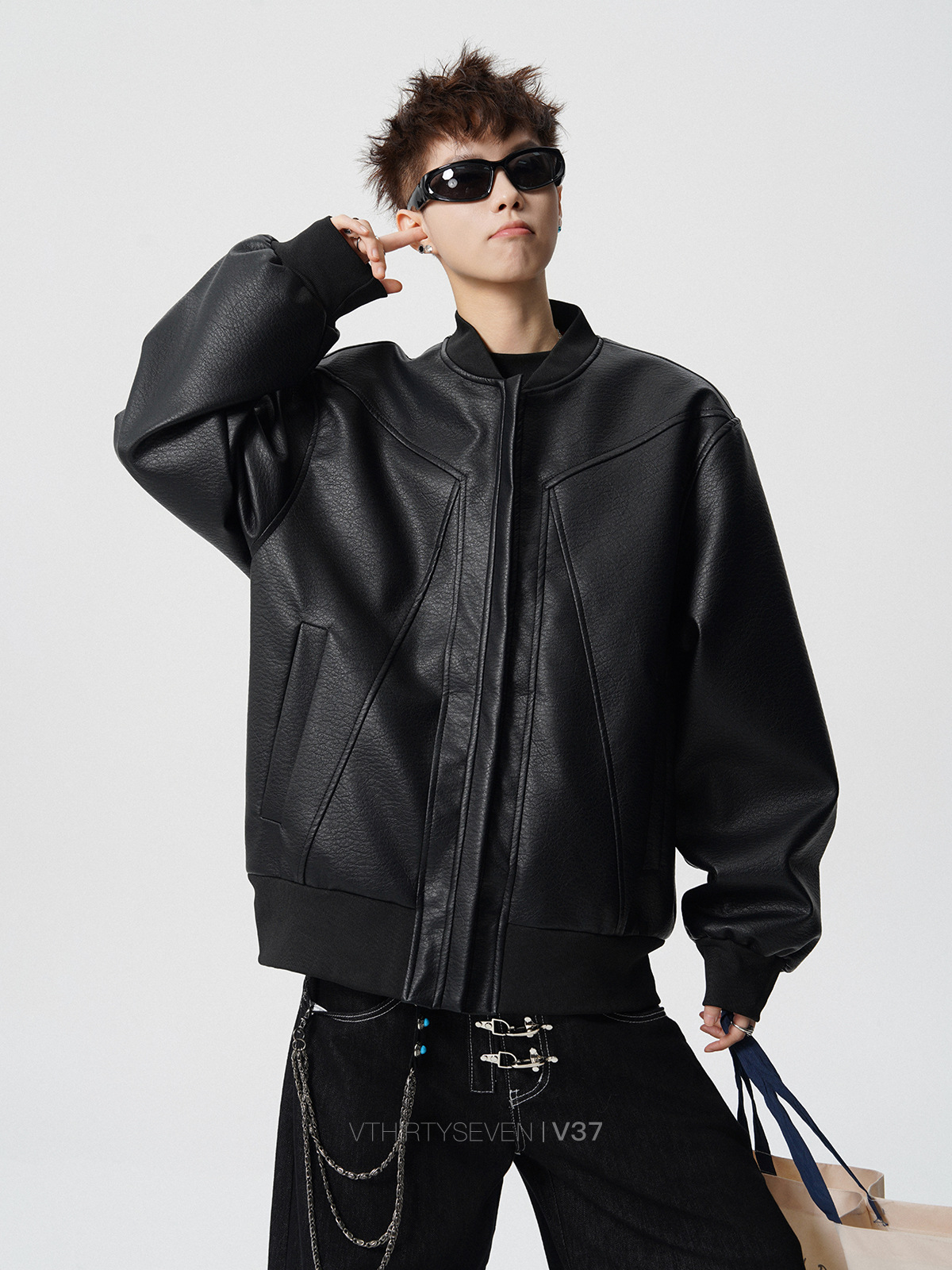 Be the first to review “Style Patchwork Baseball Collar Jacket for Men and Women Loose Casual Cotton-Padded Outerwear High Street Streetwear Stand-Up Collar Leather Jacket”